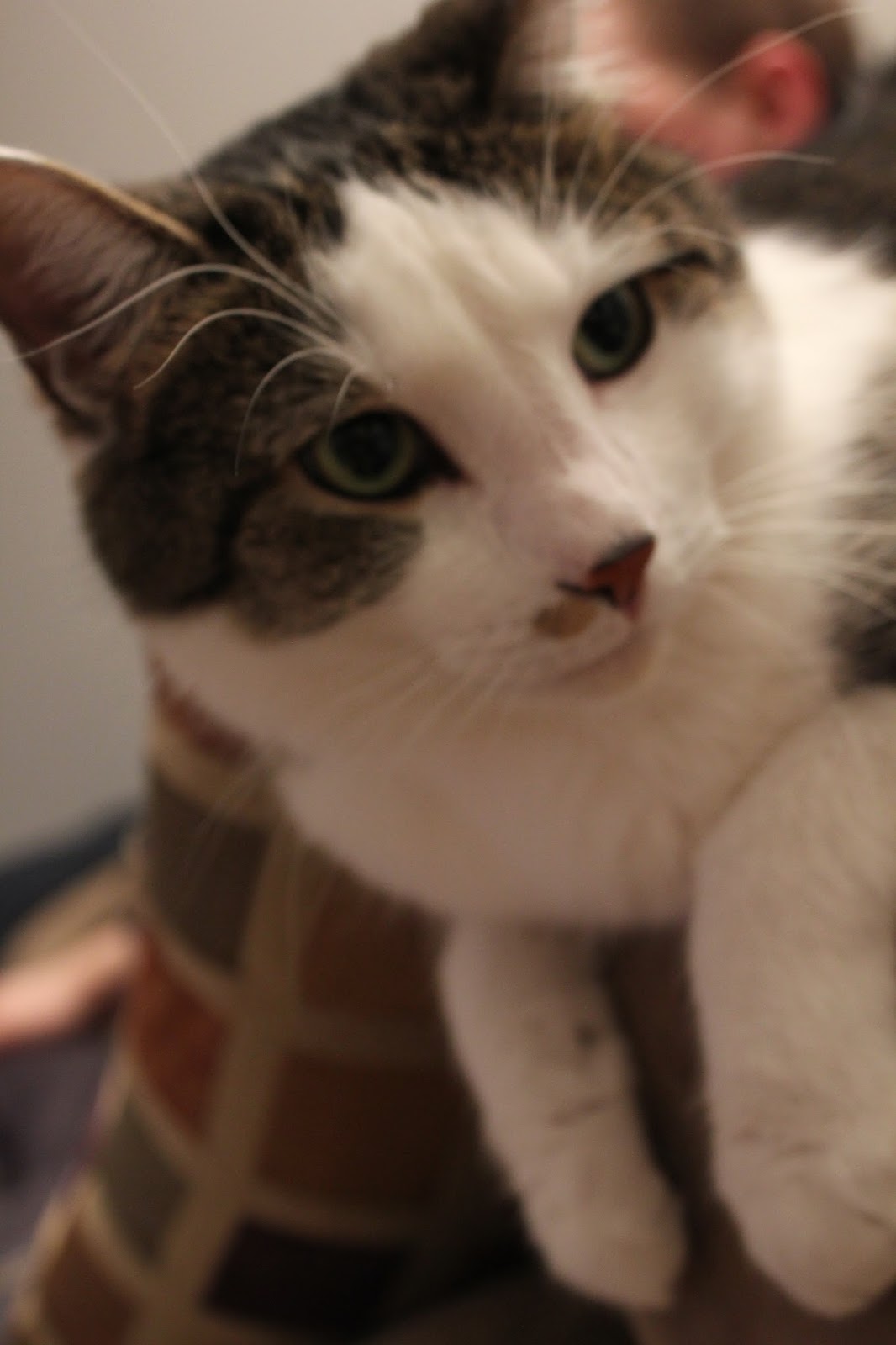 This weekend was a bit scary. Matt and I have two cats (Lilly and Snickers), who we’ve had for four years. On Saturday we realized we don’t remember the last time we saw Lilly. She didn’t come down for dinner which was really strange. Matt had been using the saw in the garage so we thought maybe she was scared and hiding. We checked in her known hiding places, but couldn’t find her. So we started wondering if she had somehow gotten out, which would be strange since she isn’t exactly the most brave cat. So Saturday evening we went outside and checked around the house calling for her. Nothing. So we hoped that she was just inside hiding and that she would come out at night when things were calm. That night I had the most restless sleep I have had in a while. All my dreams were about how we found Lilly, but then I woke up and she wasn’t there. Well Sunday morning, still no sign of her. Now Matt and I were really worried. What if she was sick and curled up somewhere in the house? What if she was lost outside? So we tried looking for her more all Sunday. After dinner Matt went outside to check again. After looking all around the house outside and in the bushes across the street, he came back to the house. He was calling her name, just about to give up when he swore he heard a faint meow, coming from our neighbors house. So he went over, looked in the bushes and there she was! I was so overjoyed when he came to the door holding her!