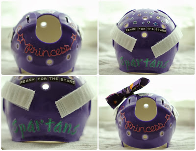 | Here is how I decorated the helmet. I wanted to do it right away, because by Sunday she will be wearing it 23 hours a day. |