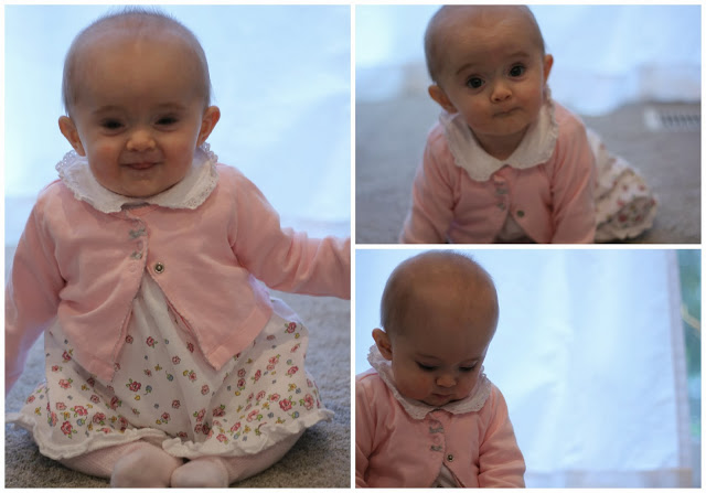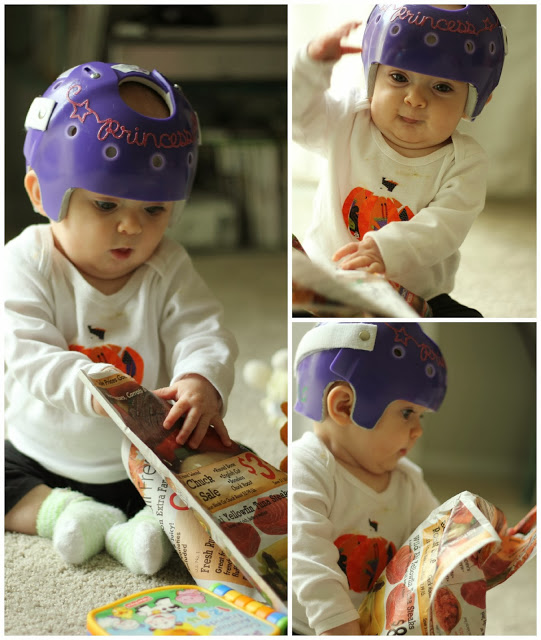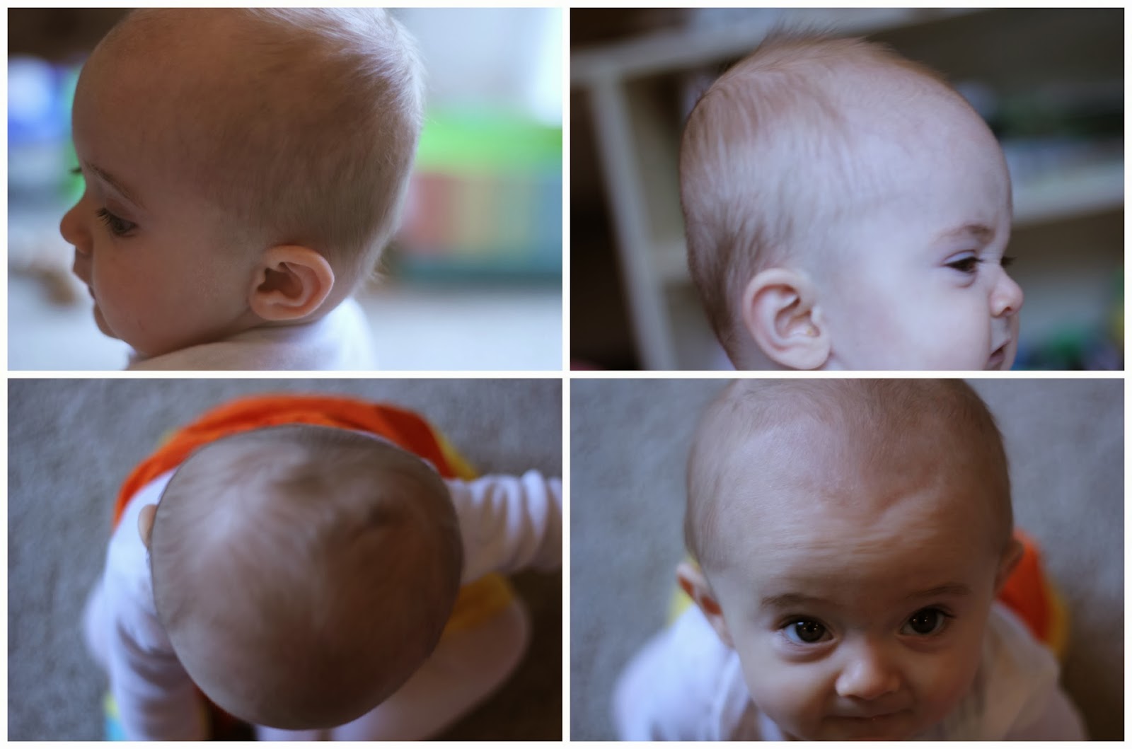 We went to the orthotist today for a checkup and Annabelle is doing great! Her head is growing in the places that it should be, and staying the same in the places it should. She has adjusted pretty well to the helmet, and goes about her day just fine. Here are some pictures of how her head is rounding out. I feel that I can really see her head starting to round out.