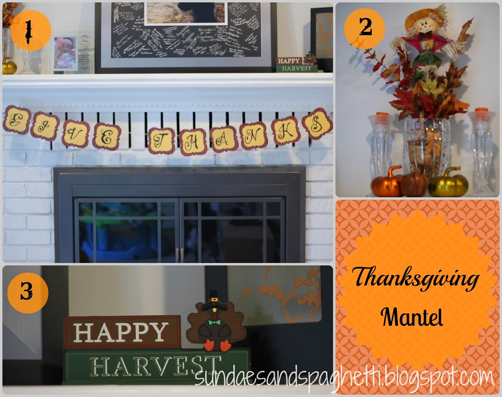 3. Even though I am listening to Christmas music, my mantel is decorated for Thanksgiving. It’s really almost the same as my Halloween mantel, with just a few (cheap) changes. I love being able to reuse decorations for multiple purposes!