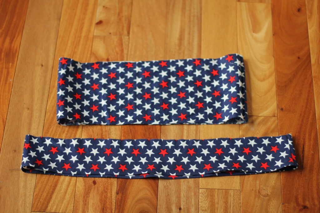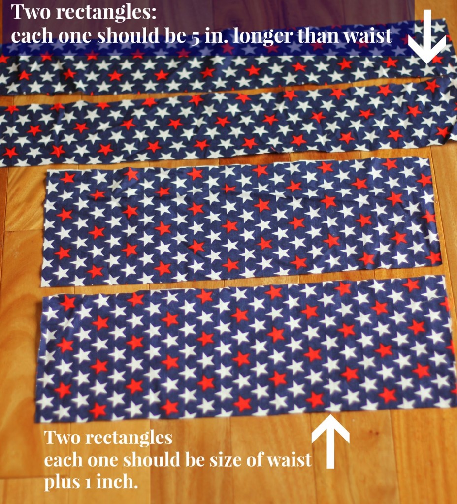 The second two rectangles will need to be 5 inches longer than your child’s waist, and 3 inches wide.