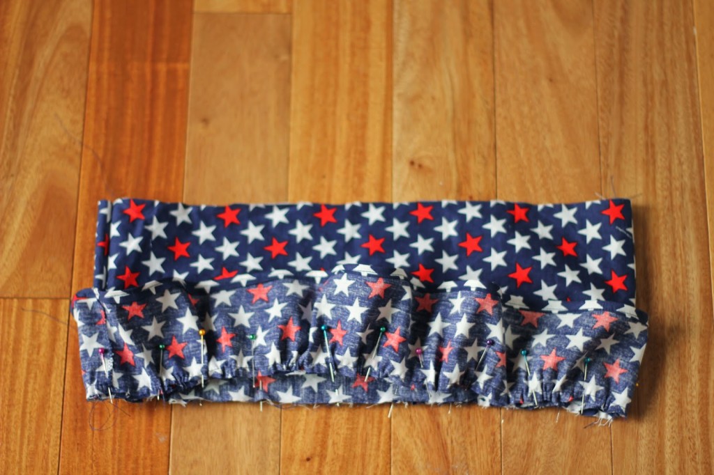 Match the two rectangles, right sides together, and sew the short ends. You can see here that I took the picture before using the zig- zag stitch. Next you will want to hem the ruffle (sorry I forgot to take pictures of this).