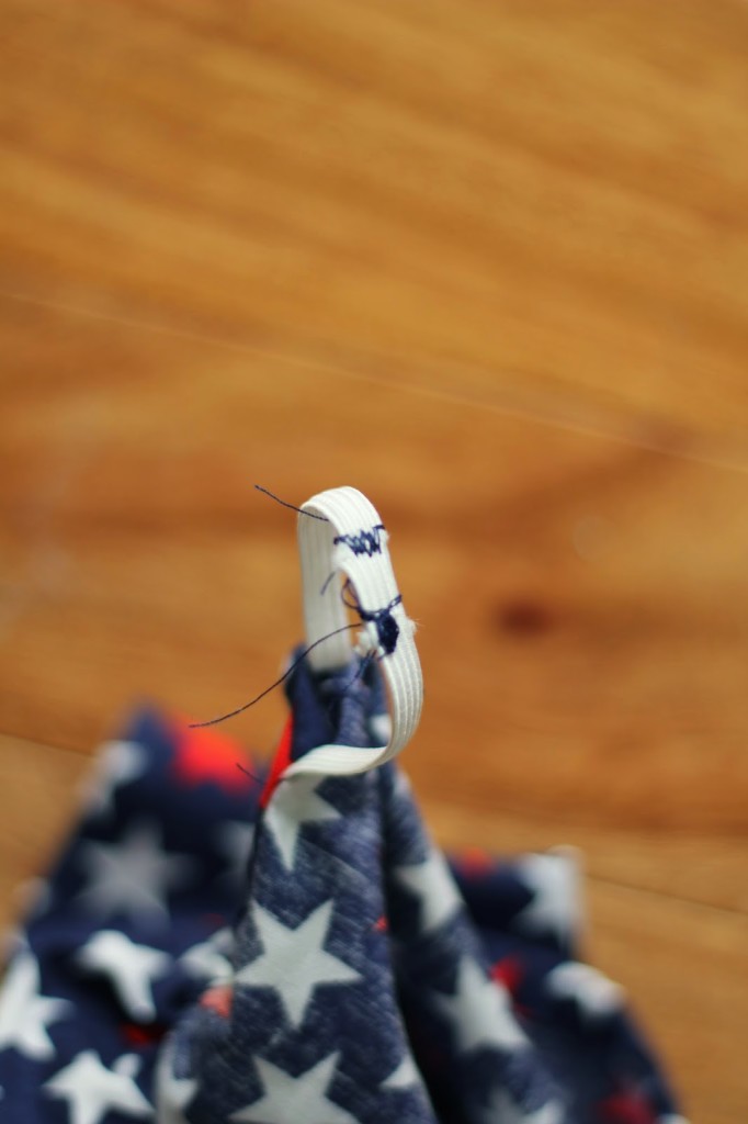 Once the elastic has been fed through, sew the edges of the elastic together.