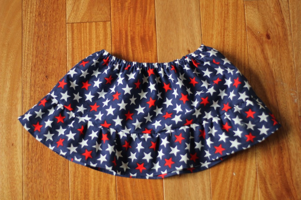 Note: Although this outfit is for Fourth of July, you can use any type of fabric you would like to make the skirt. Maybe some fun college fabric? You better bet I’ll be making Annabelle a Spartan skirt soon!