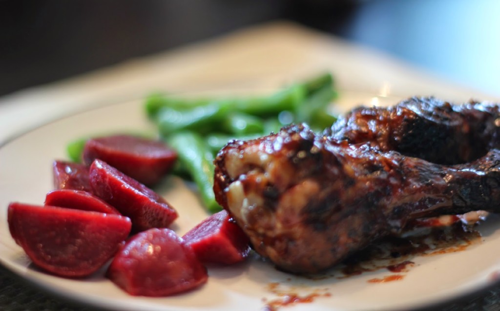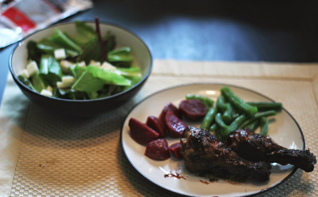 So, some of you may know that Matt and I have a square foot garden in our backyard. It’s a great way to grow a variety of vegetables and herbs without taking up a lot of space. For dinner over the weekend we made BBQ chicken drumsticks with sides from our garden!