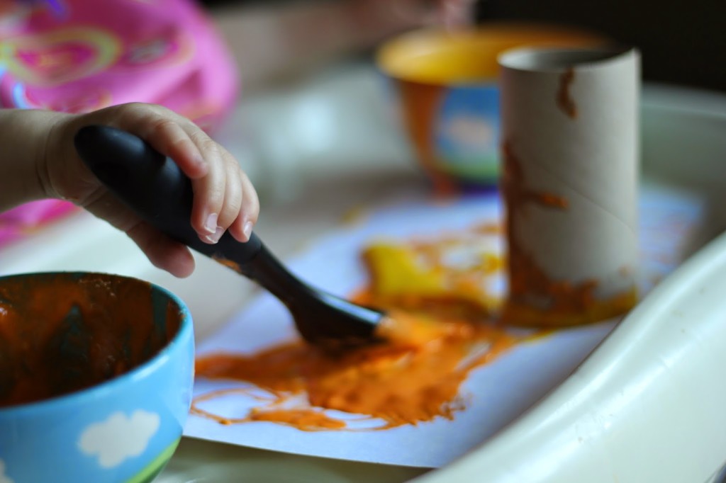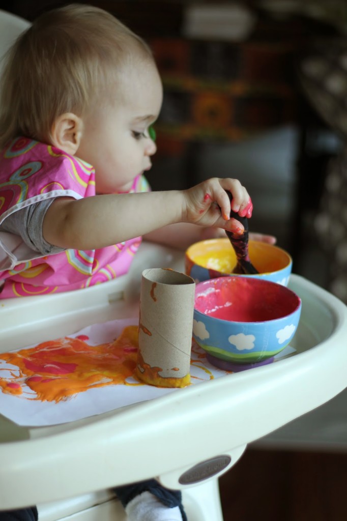 I also have no paint bushed, so I let her use a basting brush. I also had toilet paper roll for her to use but she wasn’t so much into that.