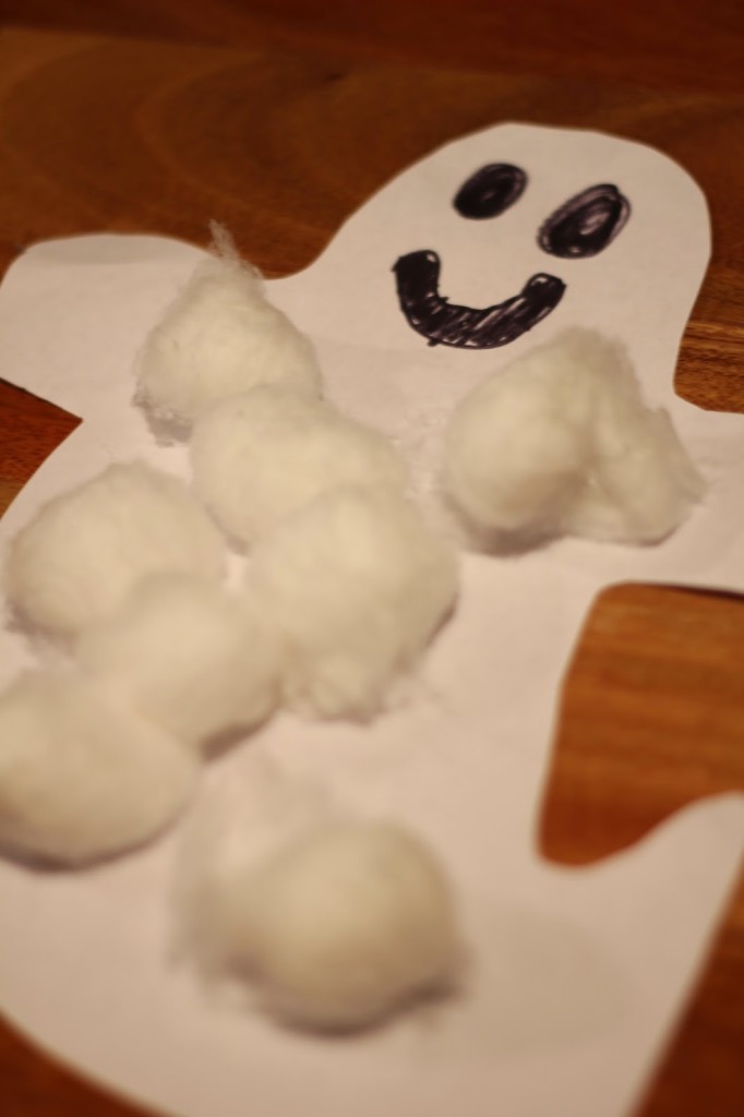 Make a cotton ball ghost. This is another easy, easy craft. Just cut a ghost out of paper and put some glue on it. Then give your little one cotton balls and let them put them on the ghost. This is also a good way for you children to work on the pincher grasp and fine motor skills.