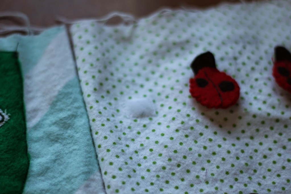 So when the book is sewn together, this is what it will look like. I also am going to add the number words under the lady bugs. I have them emroidered but haven’t sewn them on yet.