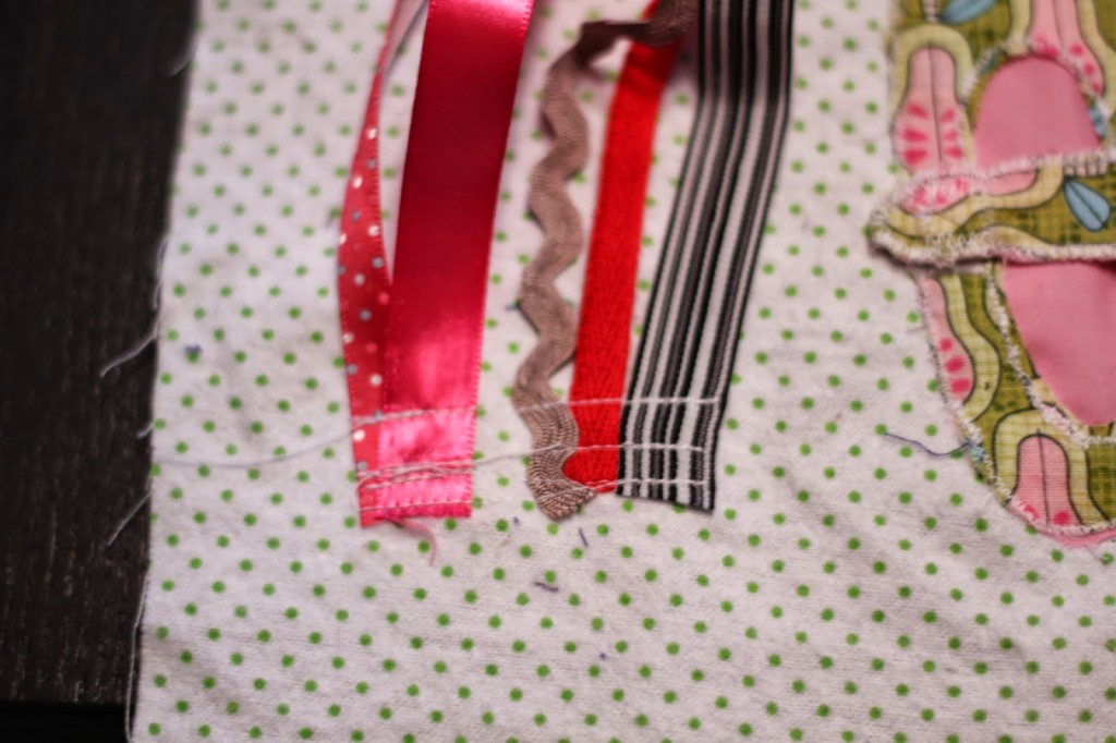 Sew the bottom part of the pocket on your book. Remember to leave the top open so your little one can take the ribbons in and out.