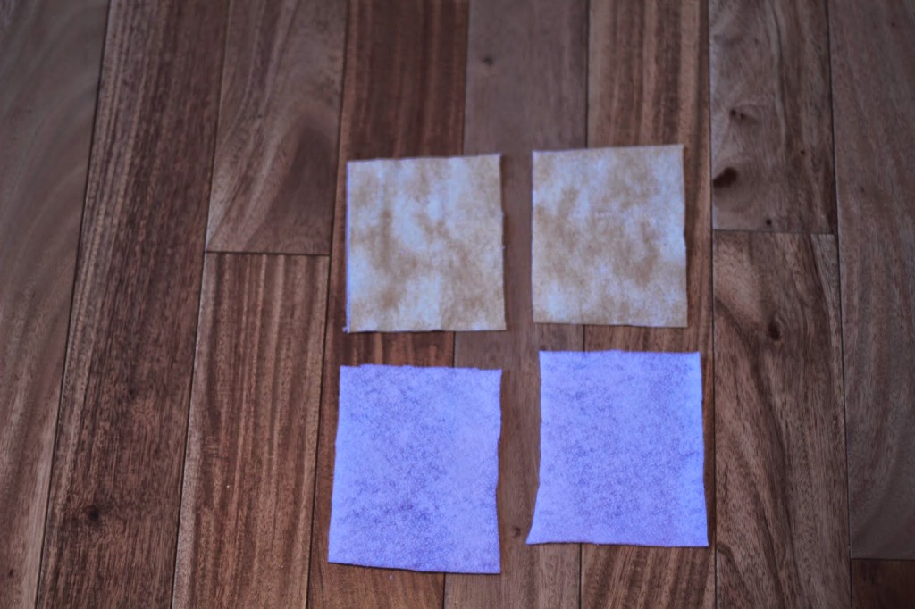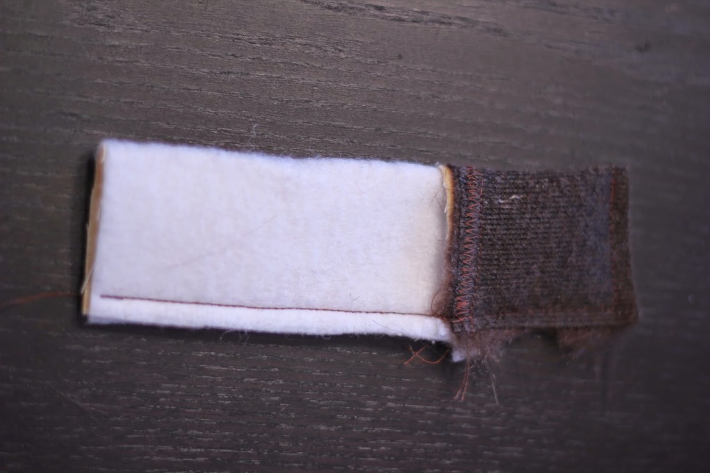 A. Cut a rectangle out of your lining fabric and some fusible fleece. Iron the fusible fleece onto the wrong side of the lining fabric.