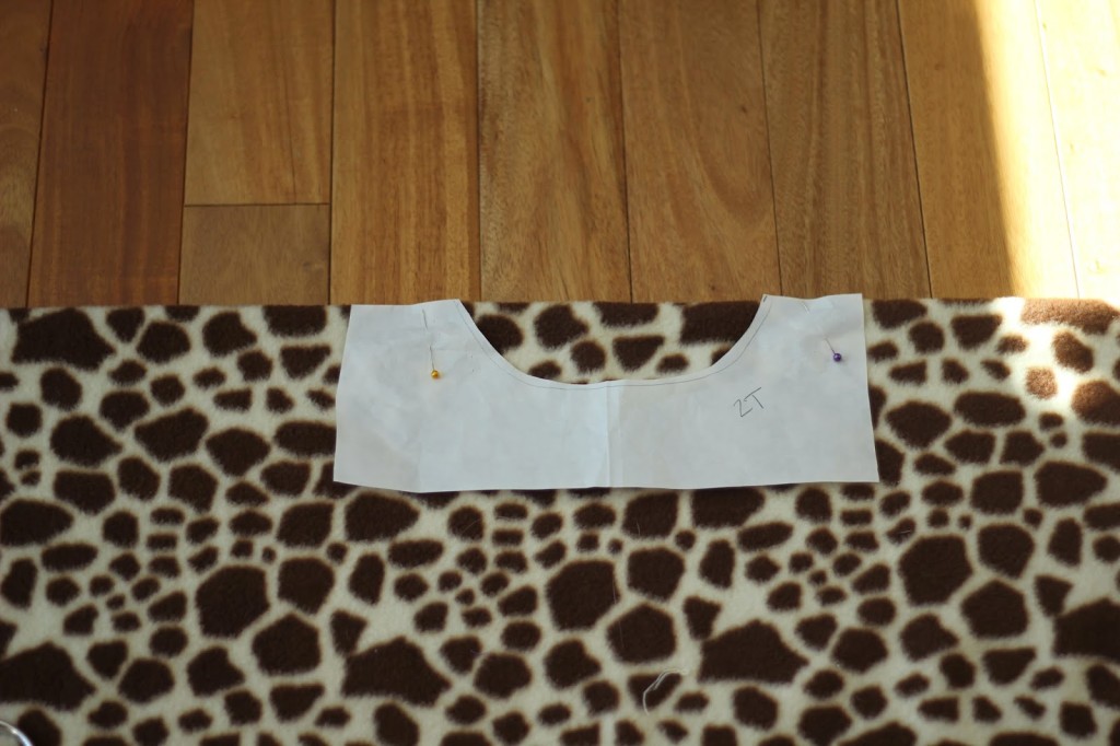 Cut out a neck hole on your outer fabric and lining. I traced a neck hole of one of Annabelle’s shirts to make the template (I didn’t take a picture of lining).