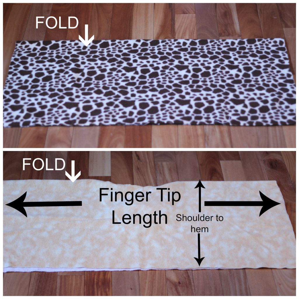 Cut your fabric. To do this you want to know how long you want the poncho to be from shoulder, and from finger tip to finger tip. Add one inch to each of those measurements (to leave room for seam allowances).