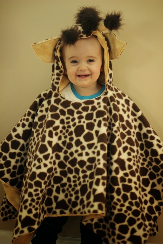 B. After sewing the edges turn the fabric out though the head hole. Now to finish up the hood an neck hole. Take an iron and fold over the lining a fabric a little (kind of similar to creating a hem, but you will only be folding it once). Then fold over the fleece and start pinning. Basically you want the two folded edges to be on the border of the hood and neck hole. I really hope that make sense!