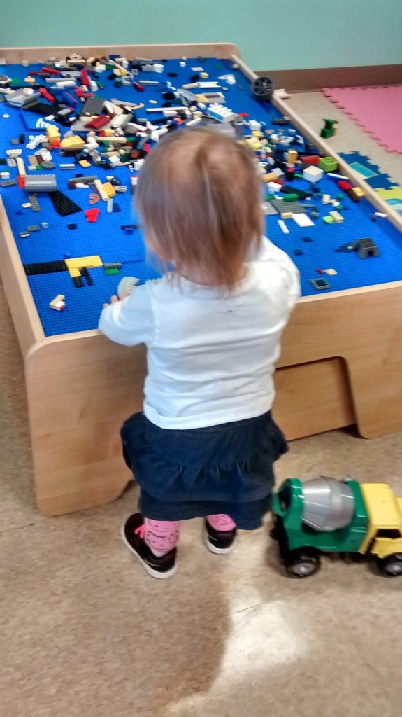 3. We went to place called Tiny Treasures for our play date. Annabelle had fun trying to play with legos.