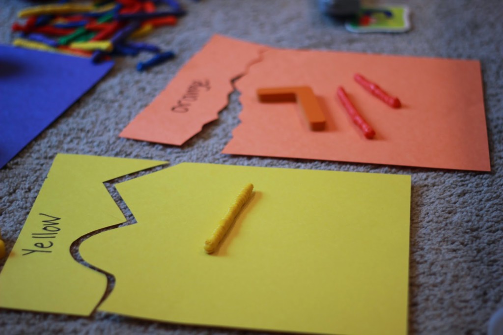 If your child is a bit older, you can write the color on the top of the construction paper and cut it off so they can match the name as well.