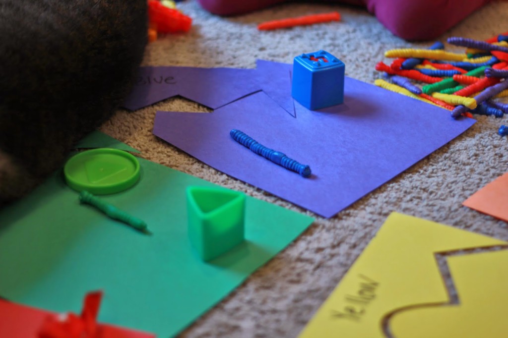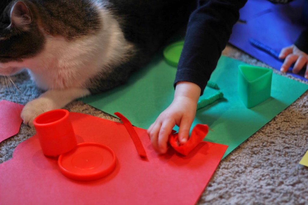 Simple and fun. It allows kids to be engaged in the activity, and provides some tactile experience if you use different materials to sort. Whenever she picks up on object I have her tell me what color it is, then have her put it on the right color. I guess our cat was interested in learning about colors too…