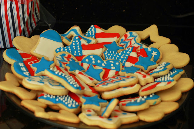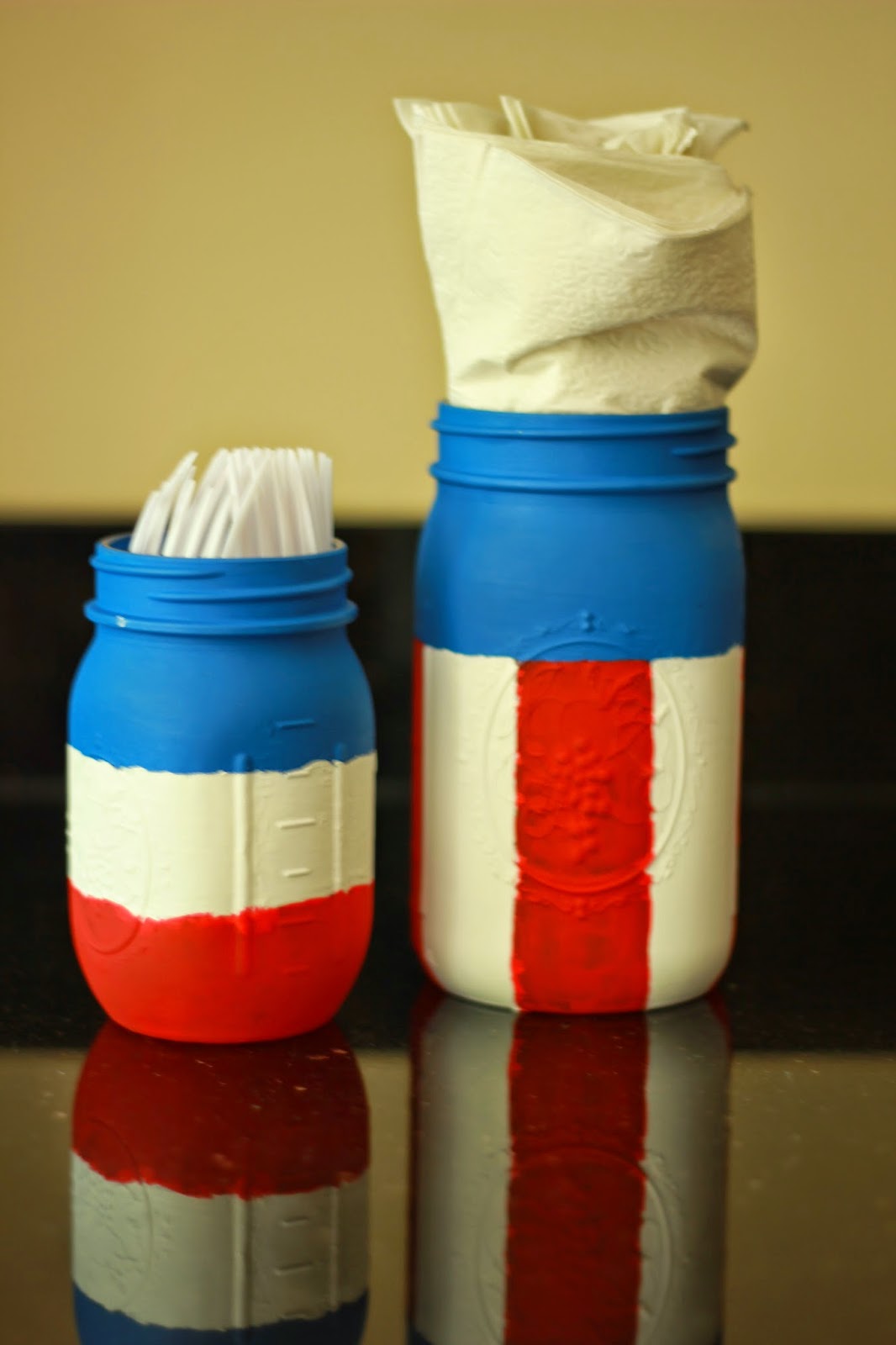 I wanted to paint stars on them, but ran out of time. One of our friend pointed out the one on the left looks like the France flag… Vive la France! Just kidding… I guess I really will have to add some stars to them. I may put a coat of modge podge on as well.