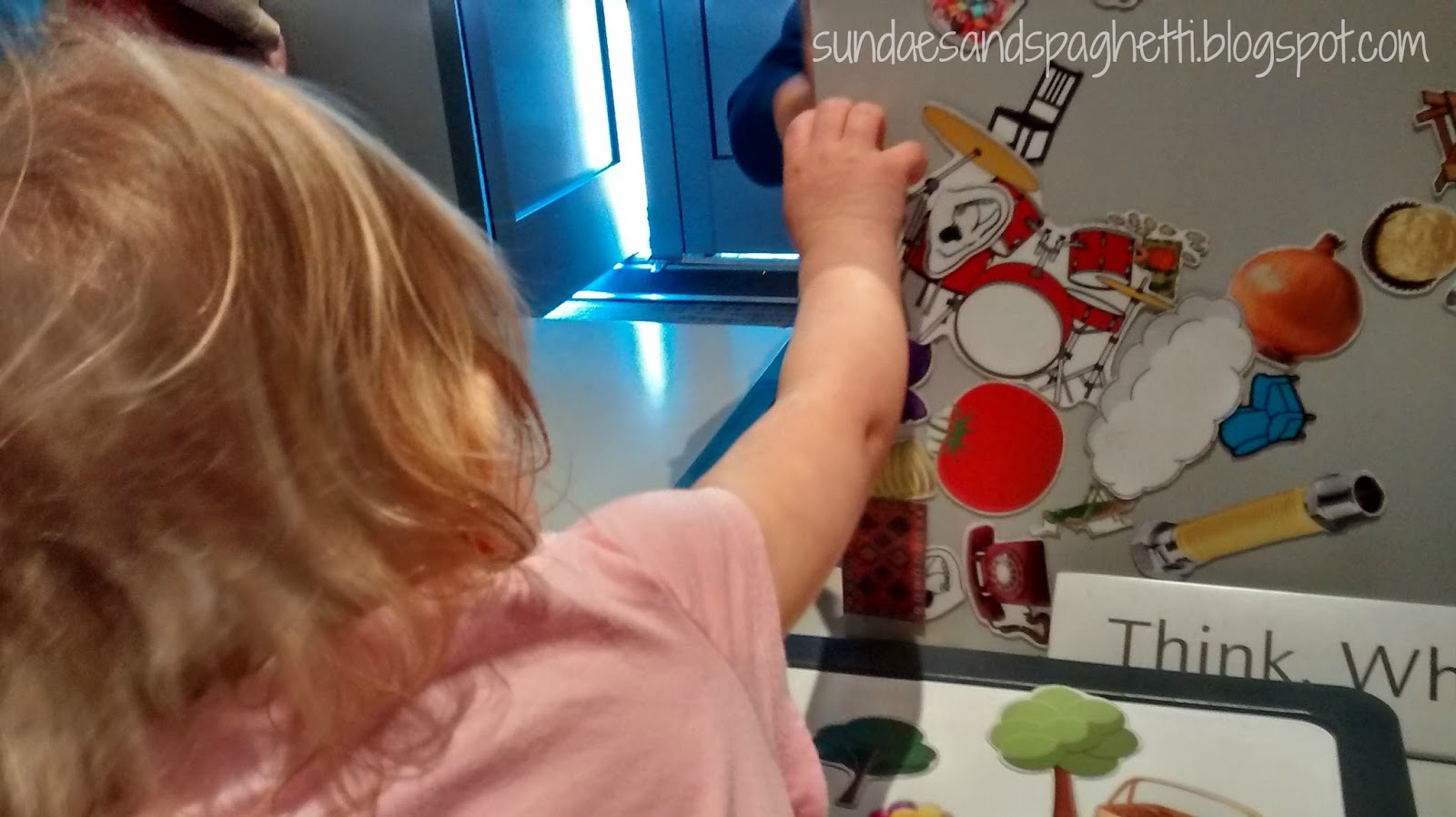 We had a small Art Fair in our town at the beginning on the month. The DIA (Detroit Institute of Art), an art museum in Detroit had a mobile unit at the fair. They had some interactive information about art (which Annabelle was not interested in), and a fun little magnetic activity.