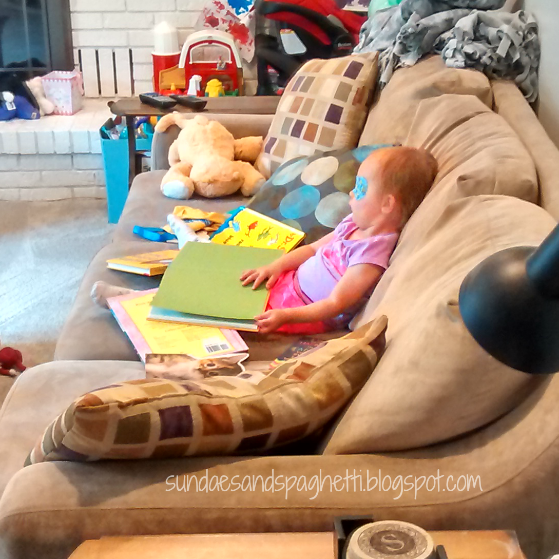Both Annabelle and I are signed up for the summer reading program at our local library. I love when Annabelle gets a bunch of books out to “read”. It is super cute!