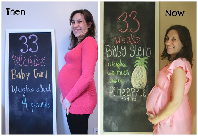 Just a little comparison from 33 weeks with Annabelle and 33 weeks with this one.