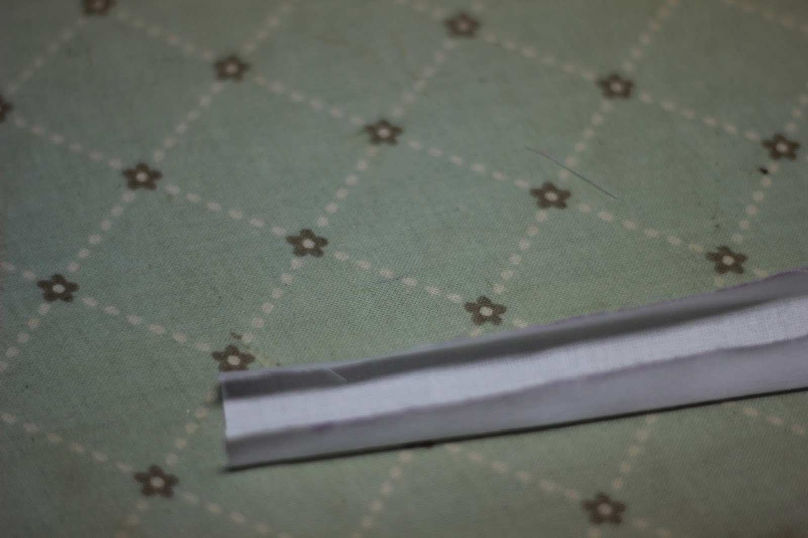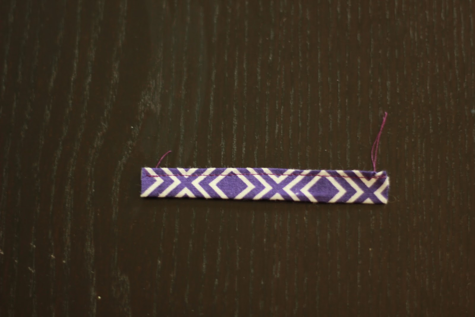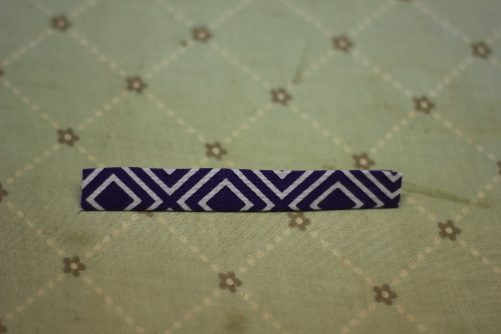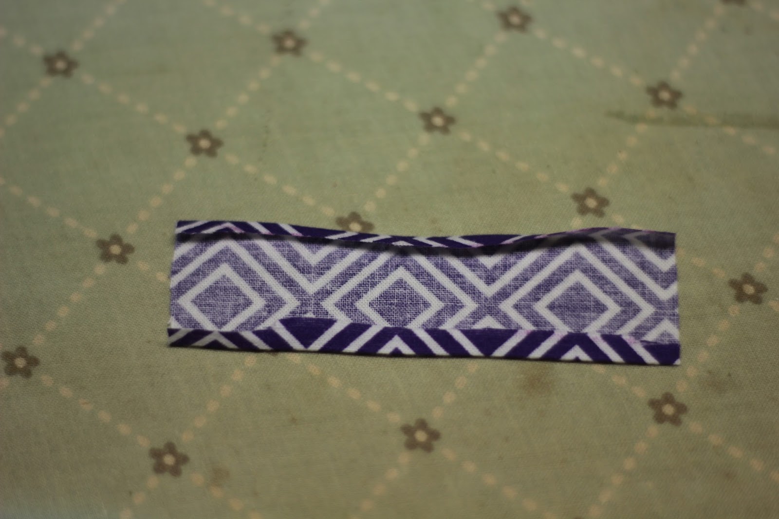 A: Cut a piece of fabric (about 1.5 inches by 3 inches). Fold the long edges down a little and iron them.