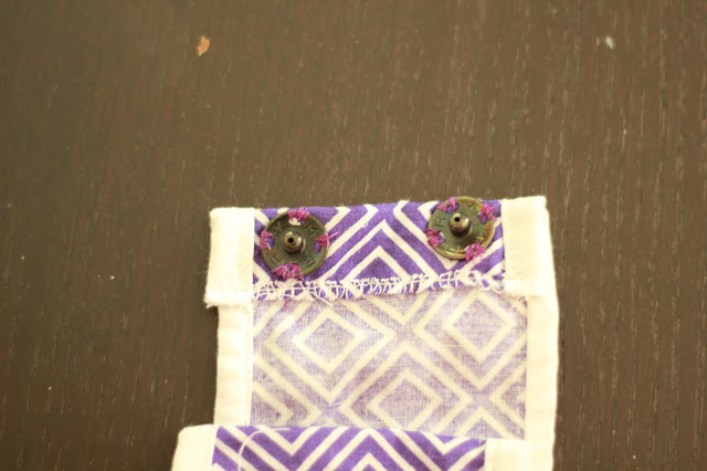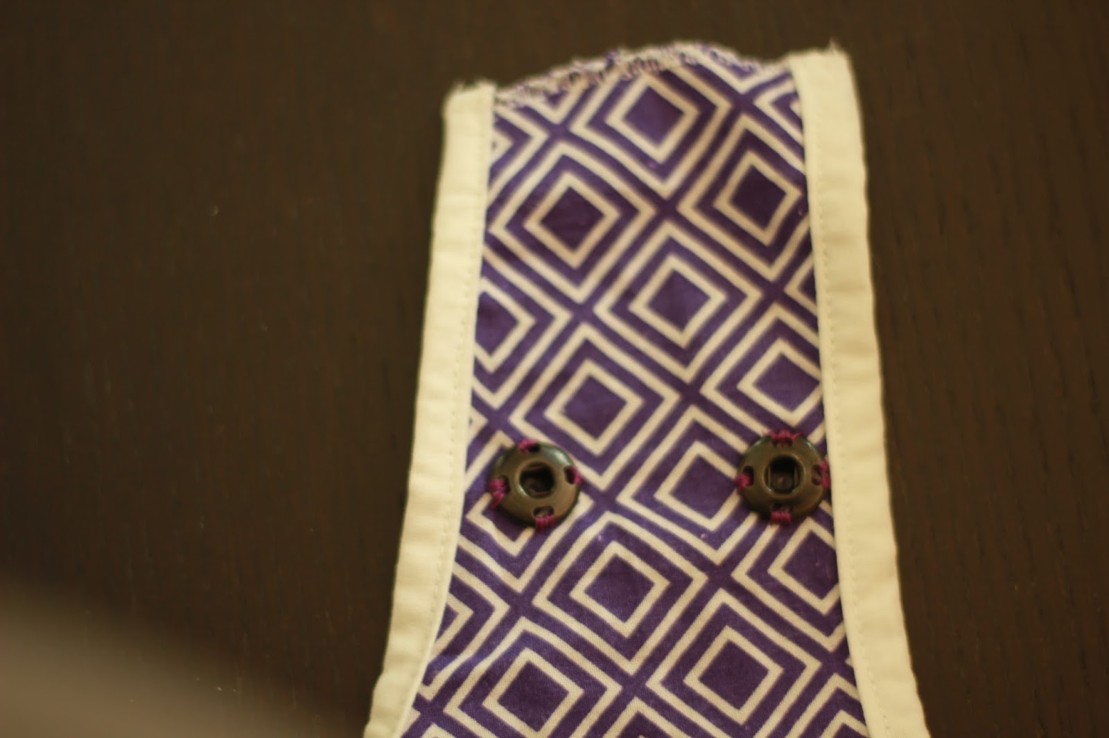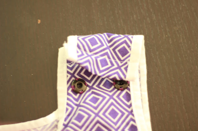 Last up is to sew your snaps on your shoulder straps. I used hand sewable snaps, but if you want you can use the snap tape too.