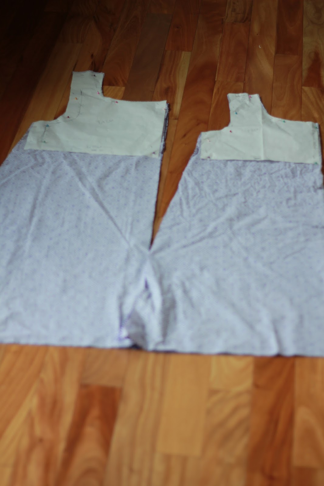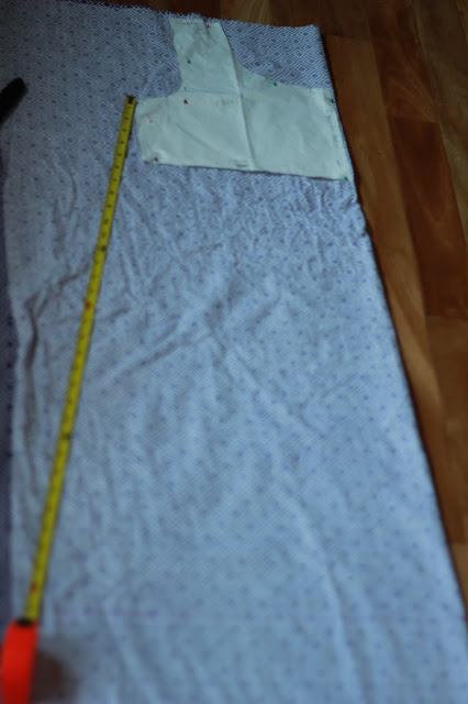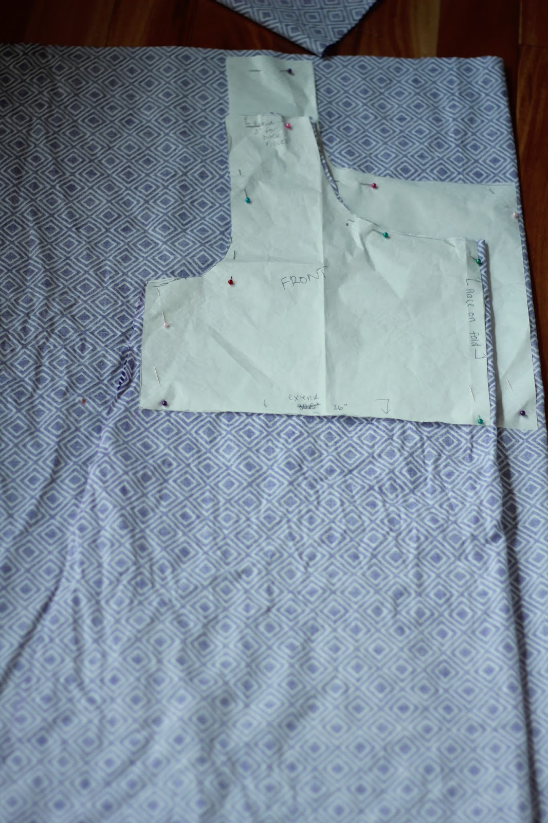A: Fold your fabric in half and place you front pattern piece on the fold. You are going to want to extend depending on how long you want your gown to be.