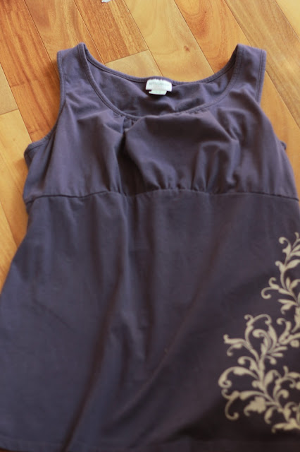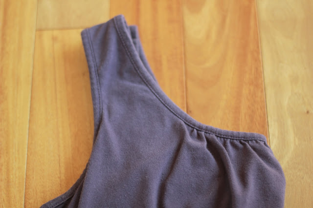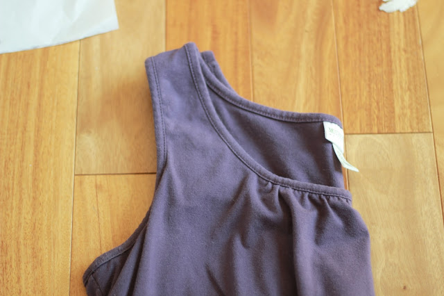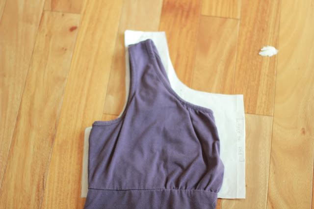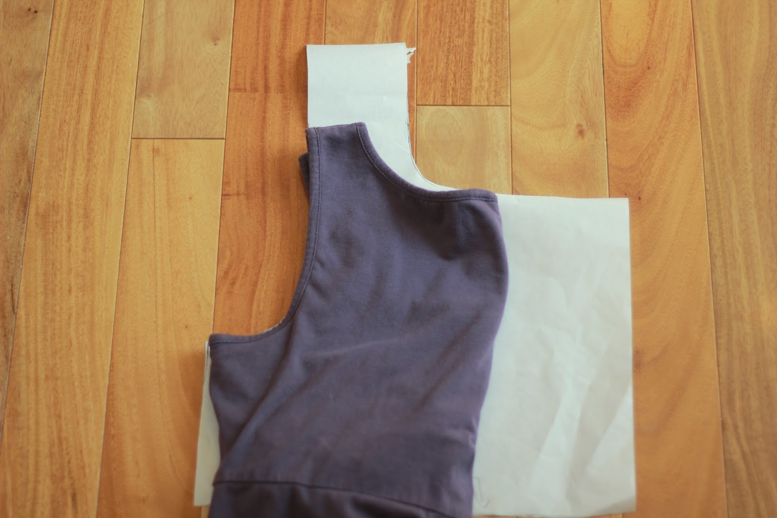 D: Trace around the tank top. I wanted the front to be a little higher, so I raised it up a little. Also, since this shirt is stretchy I extended the pattern a little.