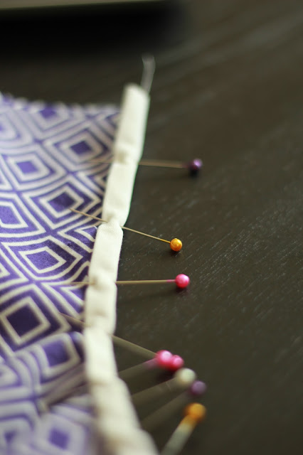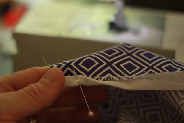 When pinning be sure to only go through one layer of the fabric. You are going to open that fold up to sew the snaps down.