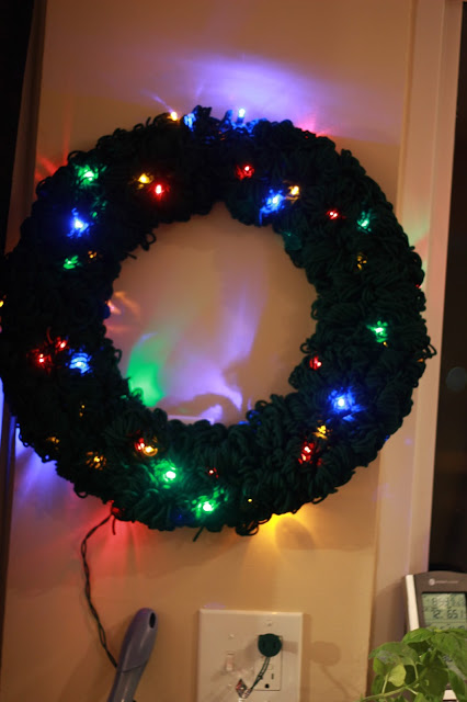A few year ago I made a wreath. It helps to add some cheer to the kitchen. When I first hung it up Annabelle said “Two Christmas tress! One in living room, one in kitchen!” I had to explain to her that this is called a wreath. Silly girl.
