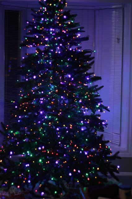 1. When we bought the tree (our first Thanksgiving married) it was pre-lit. We thought we bought a multi colored tree, but it was white. We decided to buy a bunch of multi colored strings to change the lights. I did…. and holy batman, it was a ton of work.