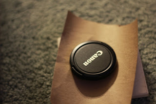 Trace your lens cap onto a darkish piece of paper, like construction paper.