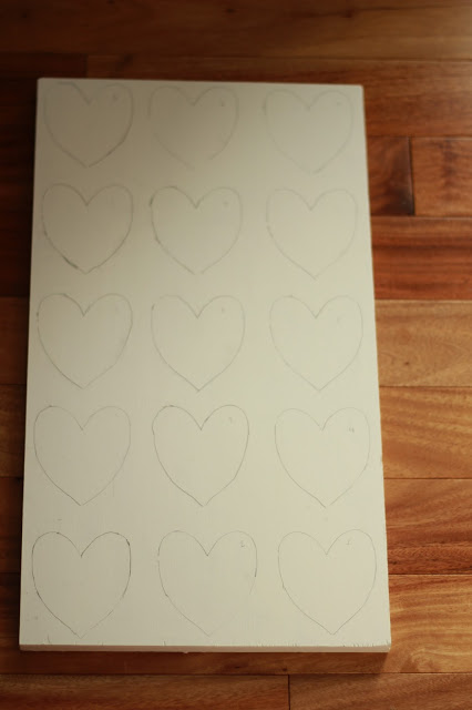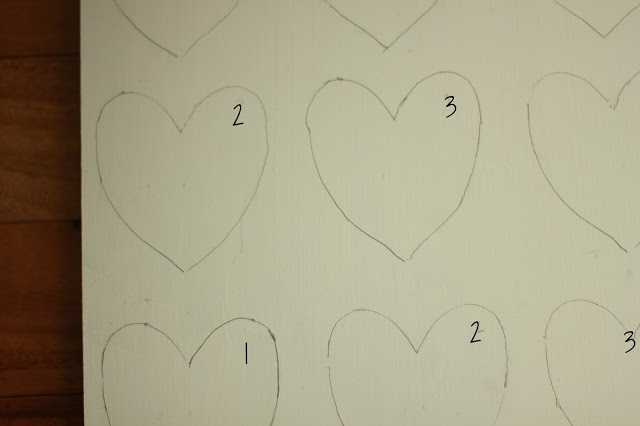 I wanted to do a diagonal ombre look, so I lightly wrote numbers in the corner of the hearts.