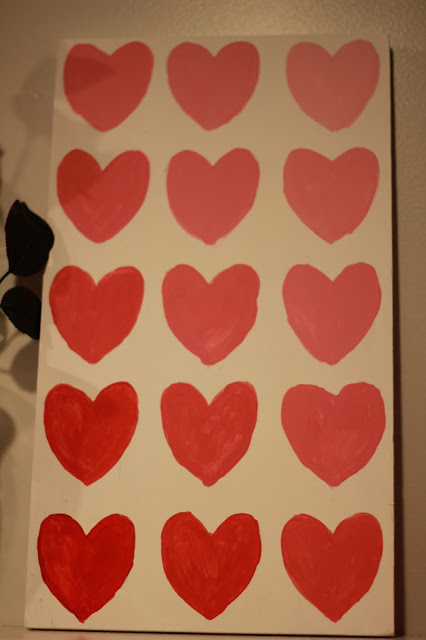 I then added some white to the red and painted hearts 2. I kept adding white paint each time I moved to a new number.