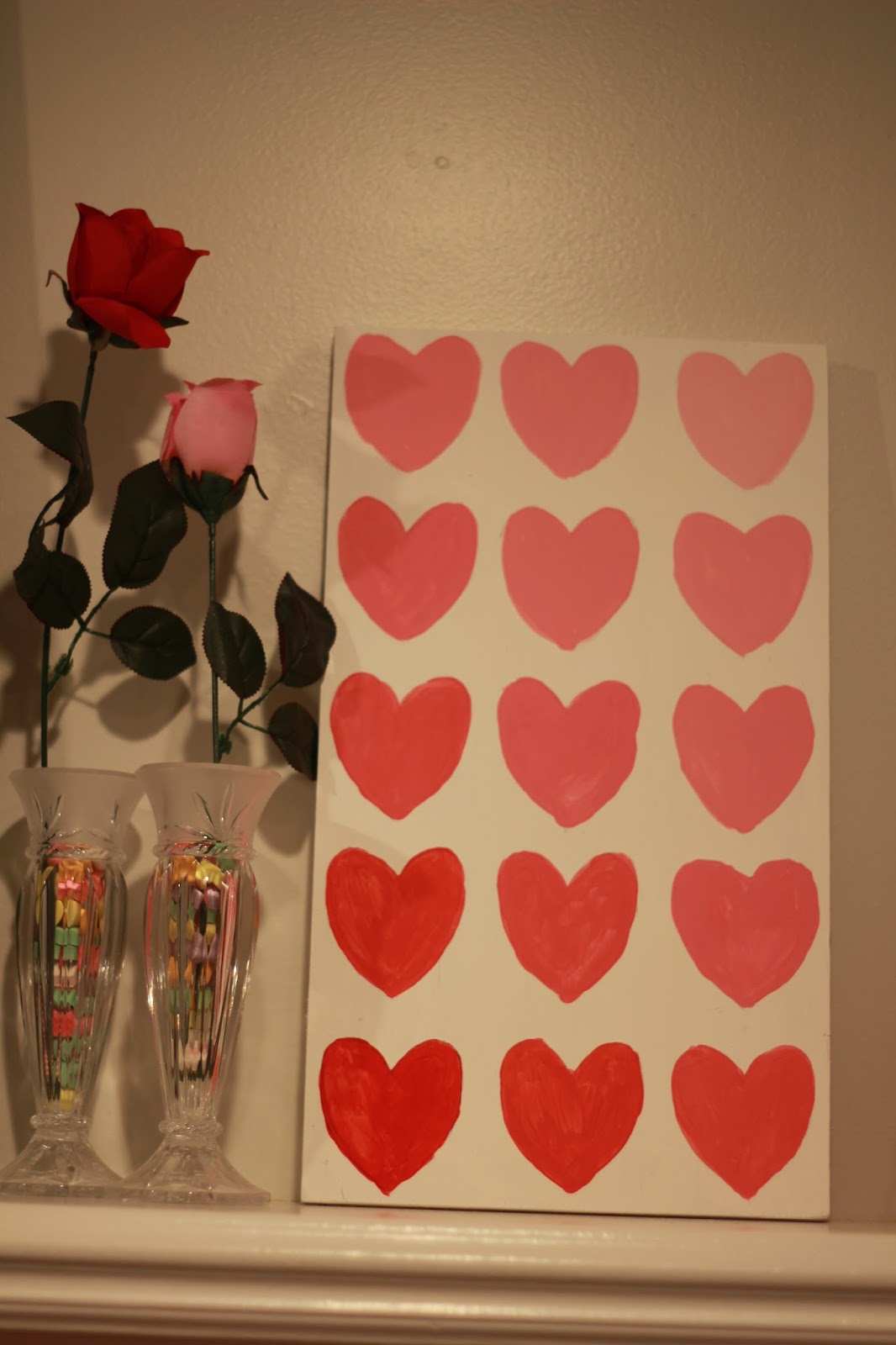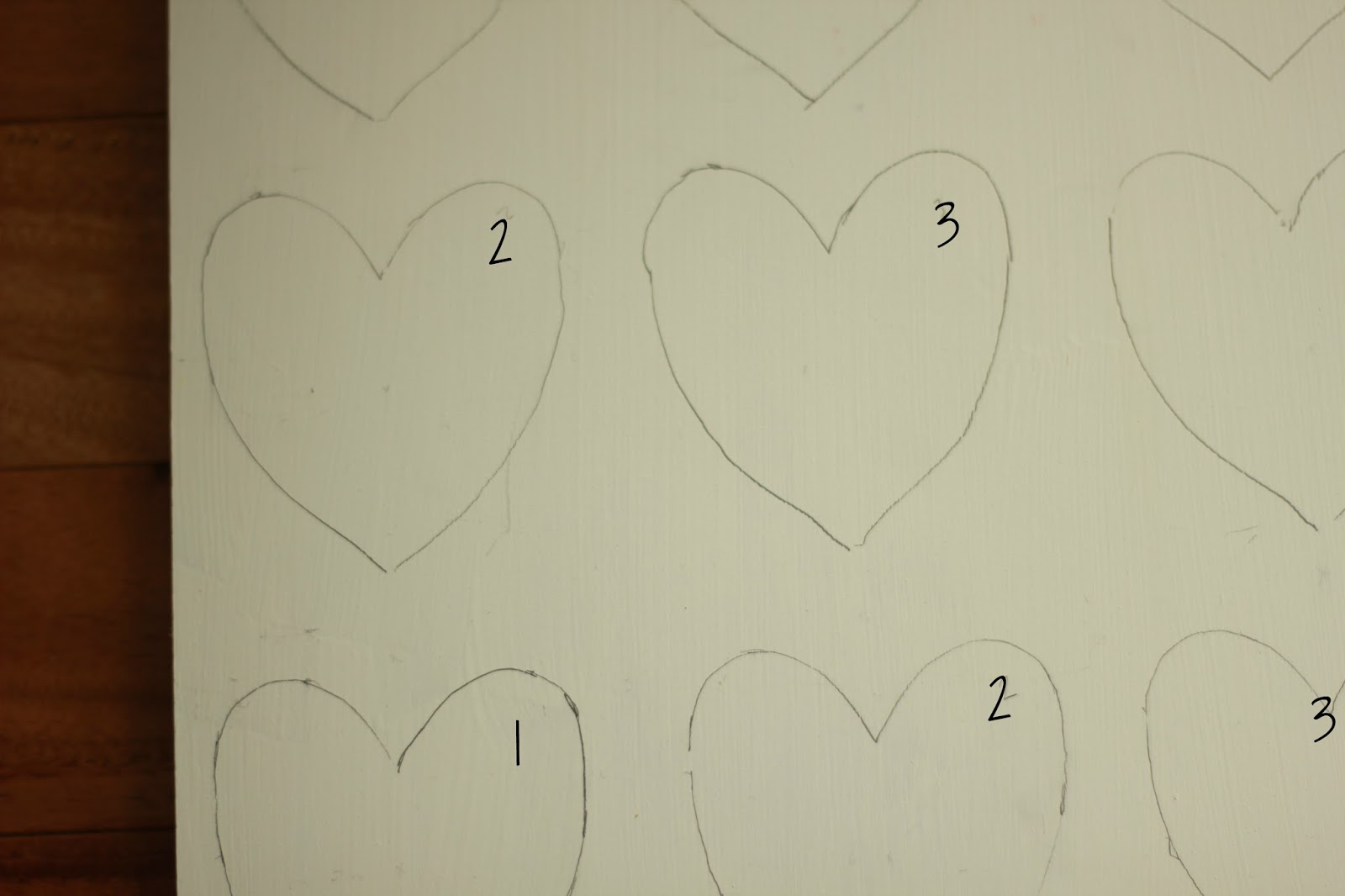 I then added some white to the red and painted hearts 2. I kept adding white paint each time I moved to a new number.