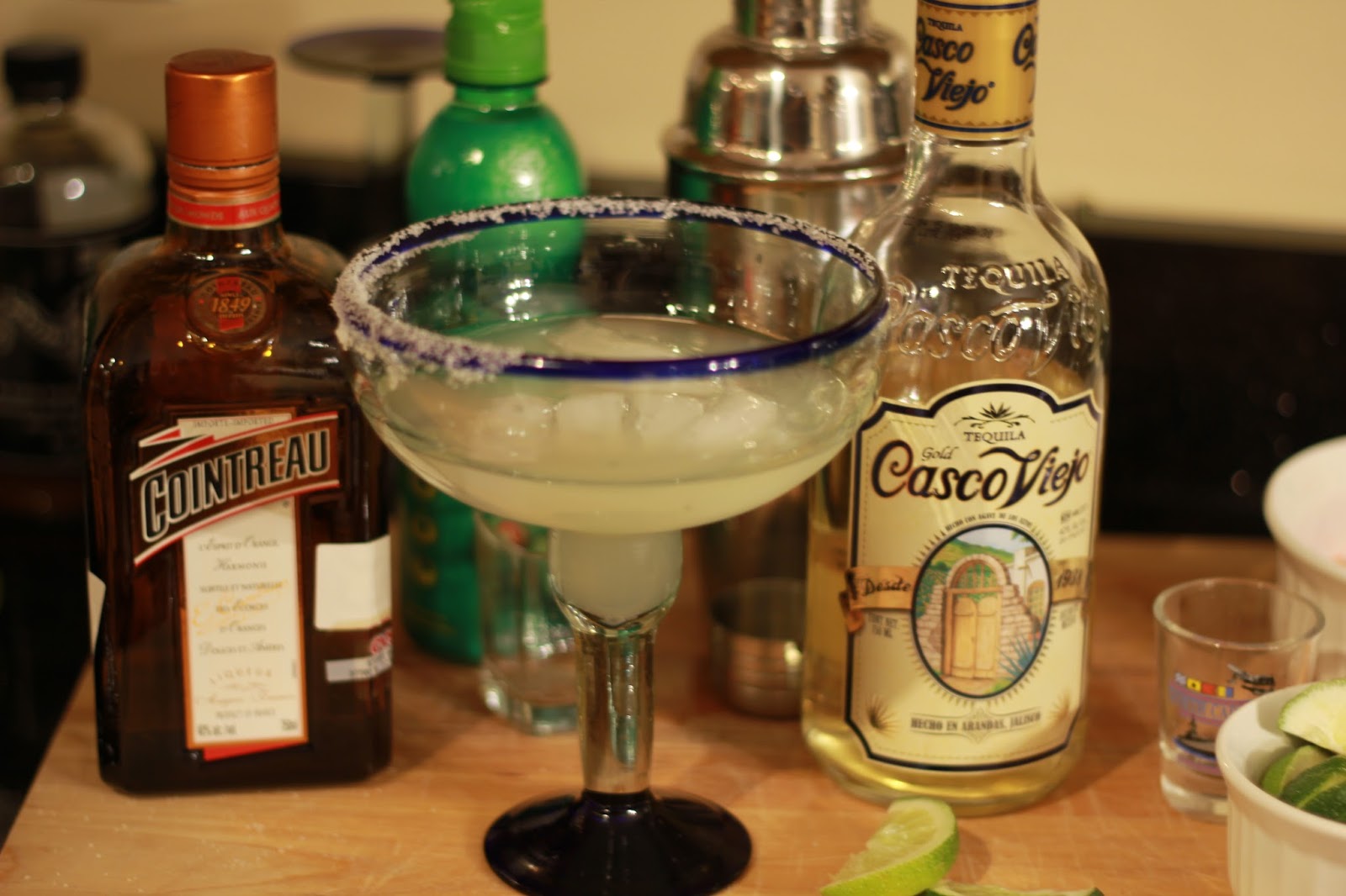 If you’ve never made a margarita before, it’s super easy. It’s just Cointreau, tequila, lime juice and some simple syrup. The amount really all depends on how you want it to taste.