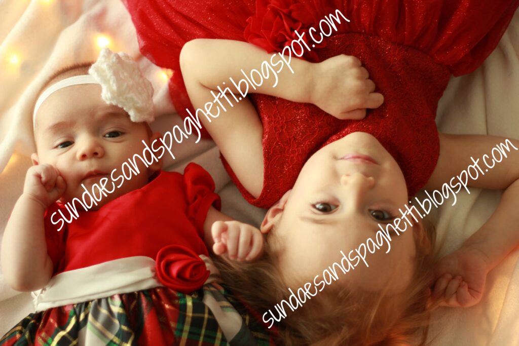 I haven’t done our “Christmas” photo shoot yet (Annabelle had eye surgery to correct her strambismus, and her eye is still red, and Autumn recently got sick, so cooperating for photos isn’t happening. Hopefully this weekend. If you want some tips, you can check out my post from last year here). I figured I’d share a picture from last year (before I switched over to A Sprinkle of Joy).