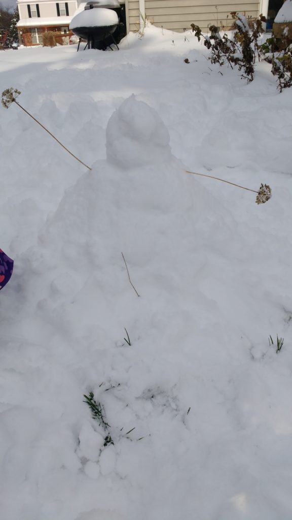 We tried to build a snowman, but it wasn’t quite packing snow yet.
