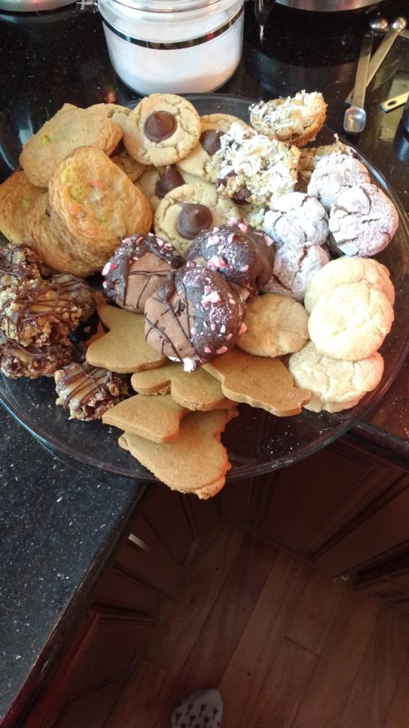 We did a lot of baking (and I still have two types of cookies I want to make). Most of the baking we did up north over Thanksgiving. One of the benefits of living in MI is that I can store the cookies outside in the garage since its so cold. I brought a plate of cookies to a get together, and here they are.