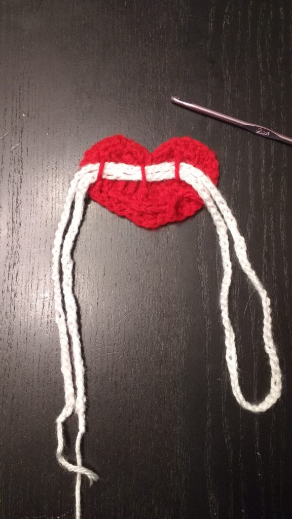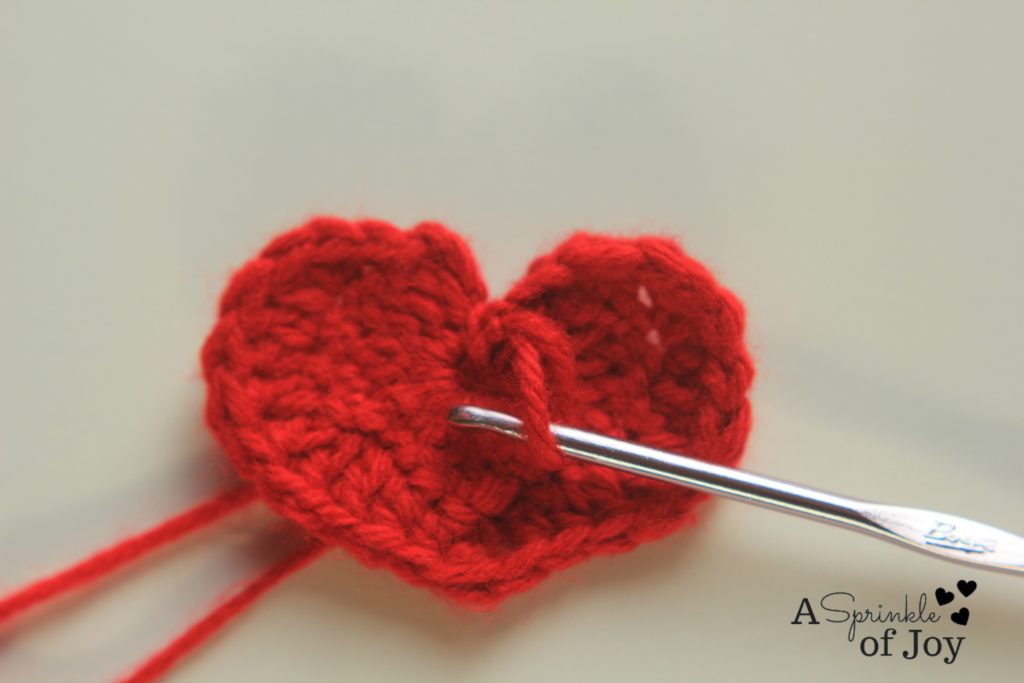 Slip the end of the last chain you made through the loops on the back of the heart. Then connect the end of that chain to the other end (you will end up with four ends together).