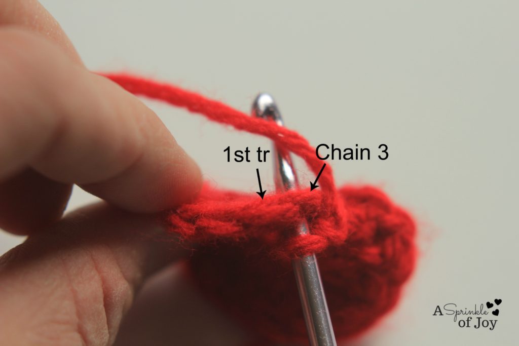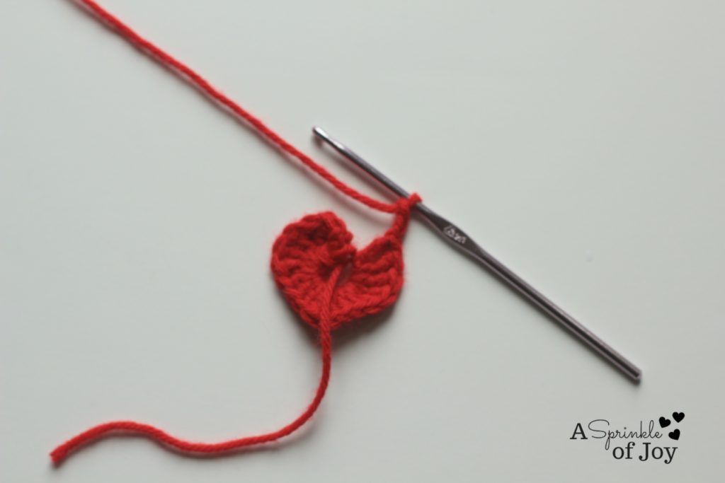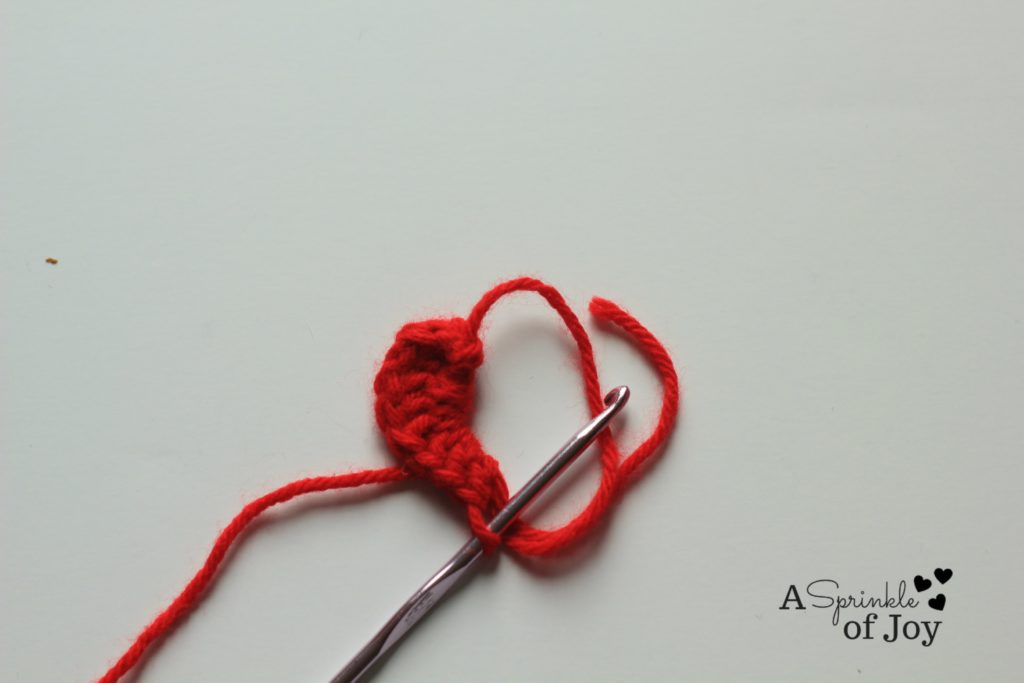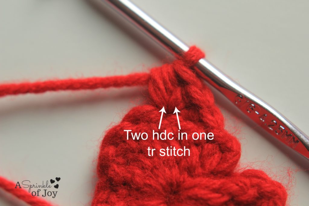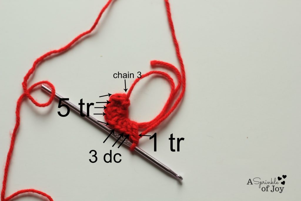 1 tr, which gives you the “point” of the heart. So, now you heart  should look like this: