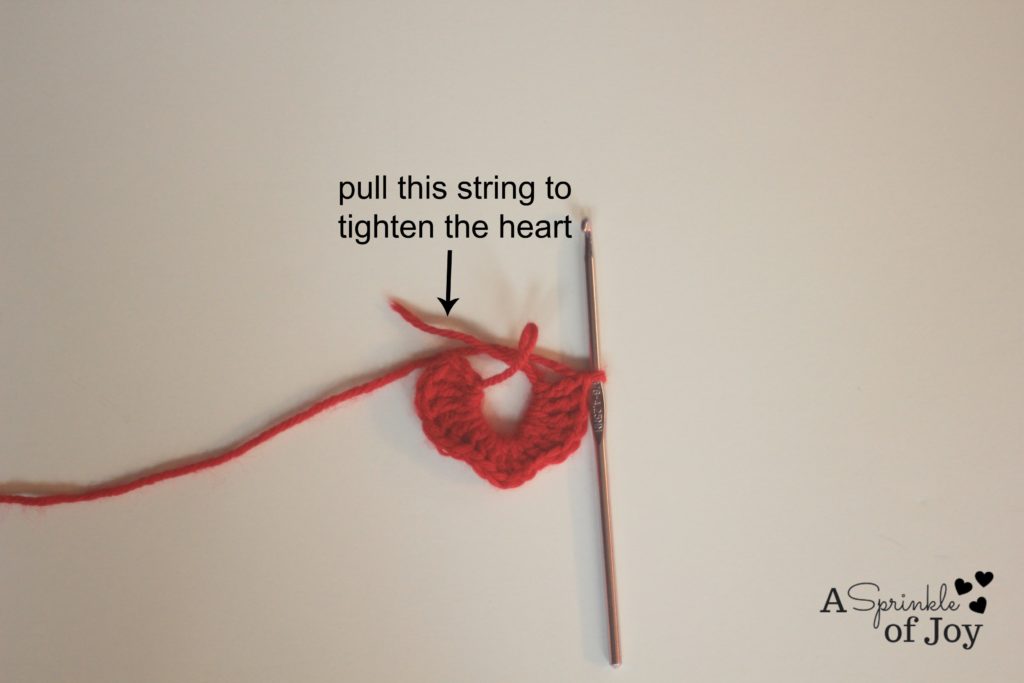 I usually keep the yarn tail from the headband long, and wrap it around the loops on the heart to help keep the heart in place.