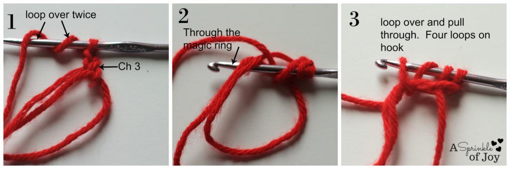 Start by making a magic ring, Â and chain three