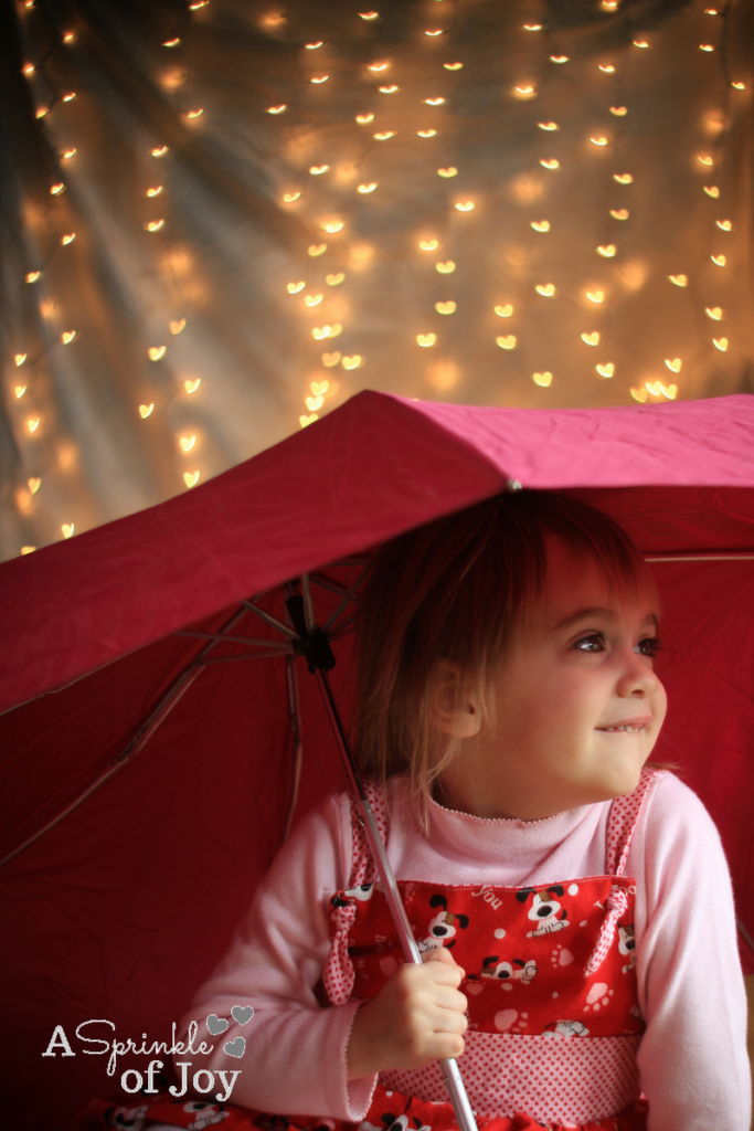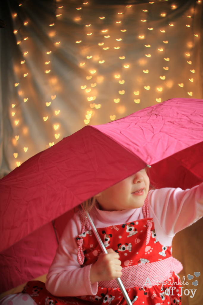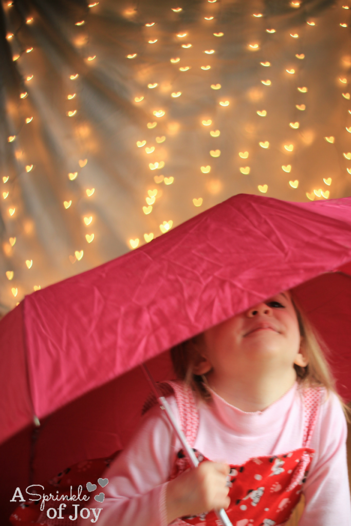 There are so many fun things you can do with shape bokeh.  If you missed it, you can check out what I did first with heart bokeh in this post.  That first post inspired me to come up with more ideas of how to use shape bokeh.  Today I wanted to share with you how to make it look like it’s “raining” hearts.