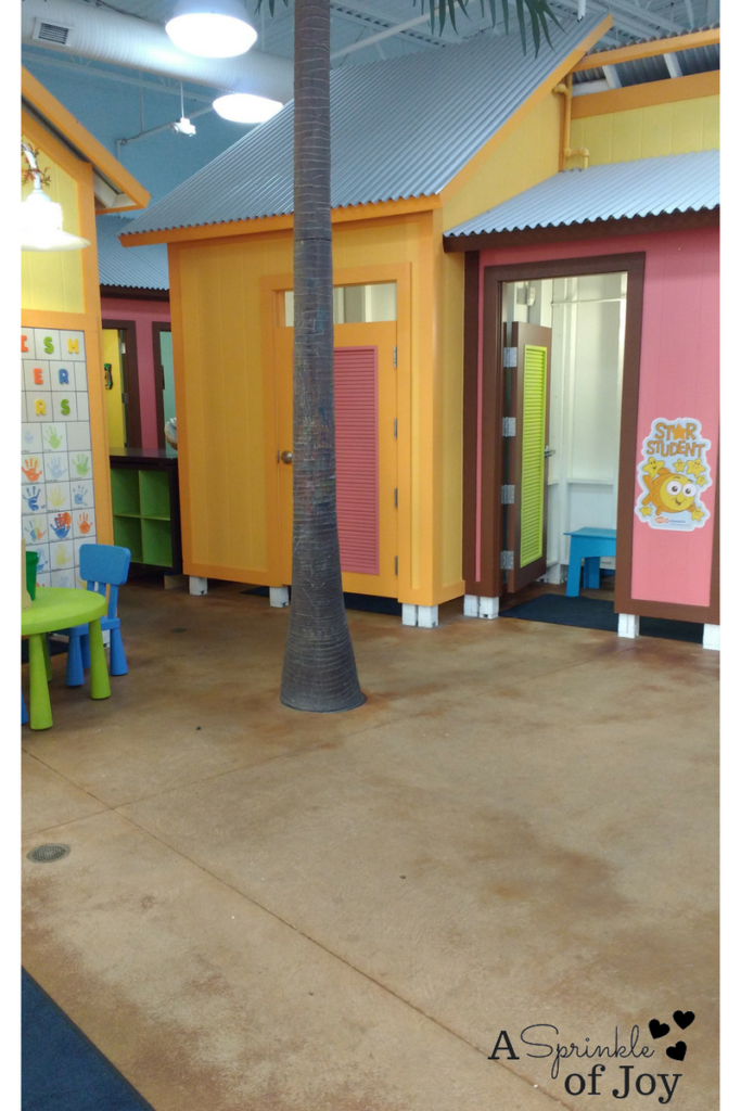 I love that Goldfish has individual changing “cabanas”. They are big enough that Annabelle, Autumn and I can all change in the same one.