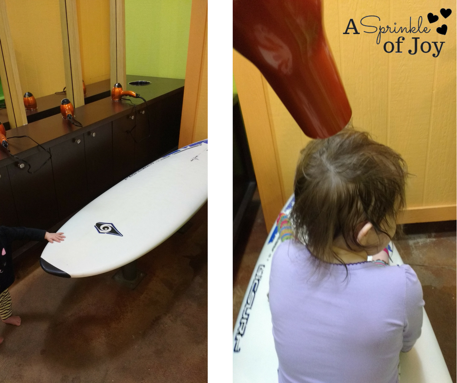 They have a coloring station which is great if you have other kids who aren’t swimming. The fact that they have hair dryers to use after lessons is pretty awesome as well.