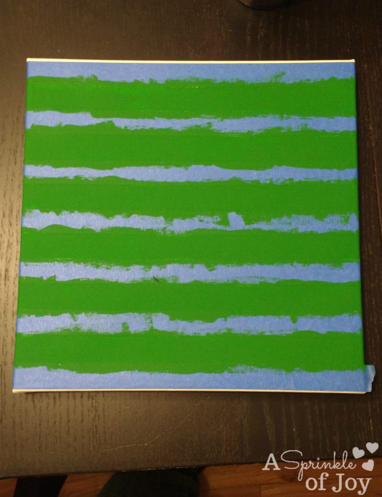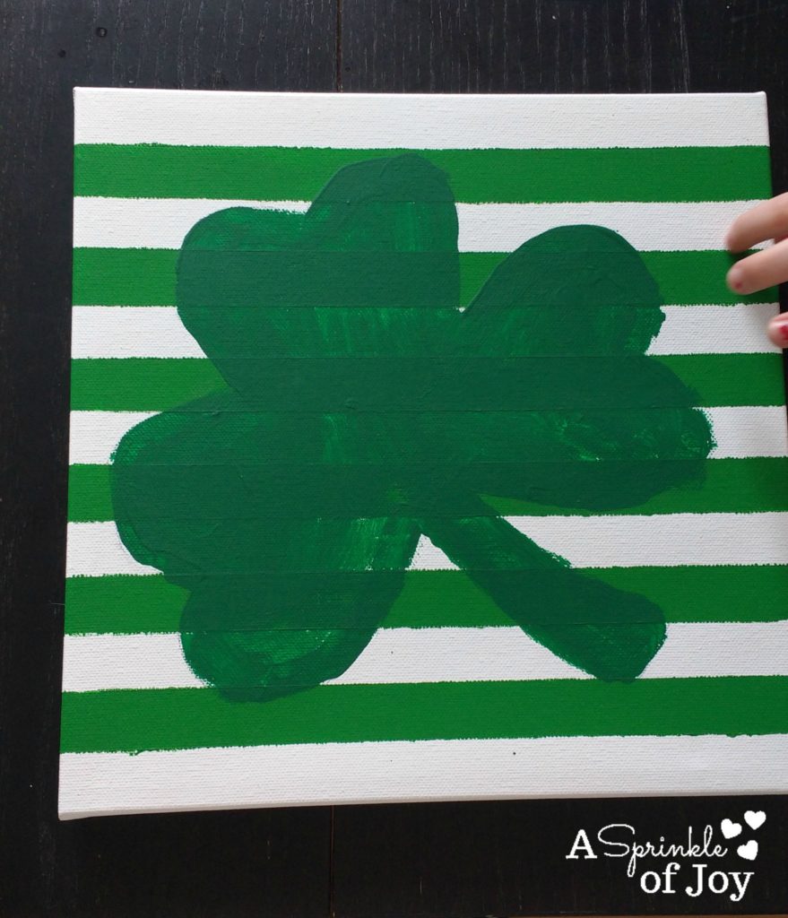 Let dry, take off the painters tape and paint your clover. I used a different color green so I could still see the outline on the painted lines.