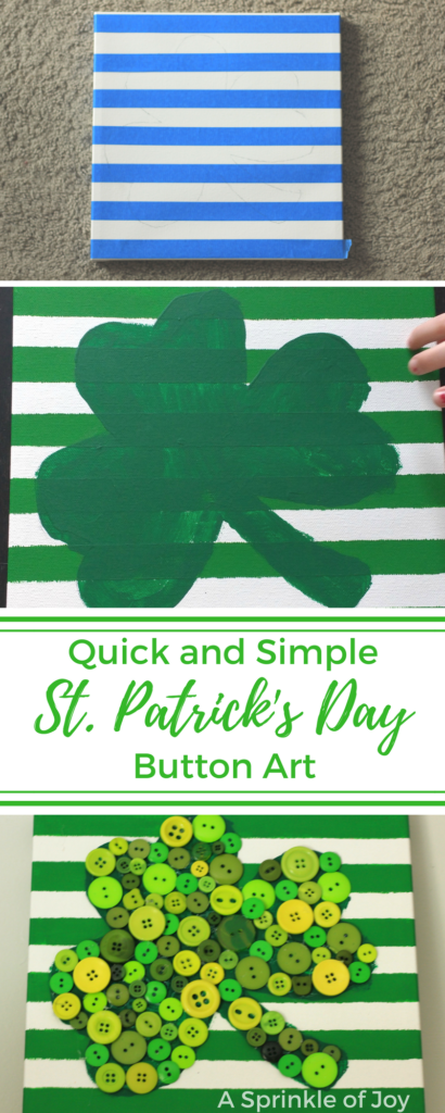 Now that Valentine’s Day is over, it’s time to start thinking about the next holiday, St. Patrick’s Day! Today I am sharing a super easy craft that you can do that was inspired by a Valentine’s Day craft I saw. This shamrock button art project is so easy to do!
