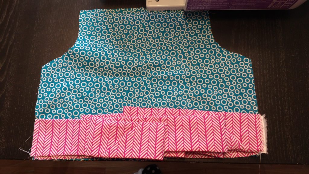 Fold the band fabric in half (wrong sides together and sew it to the bottom of the bodice front
