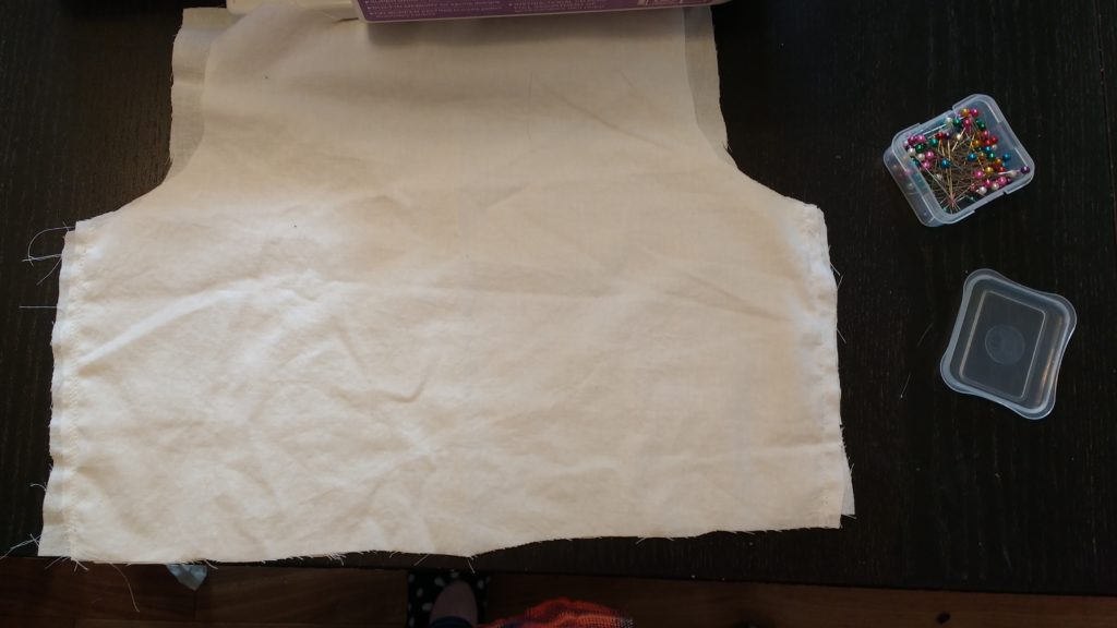Find the front and back bodice pieces you cut out of the lining.  Place them together and sew up the sides only.